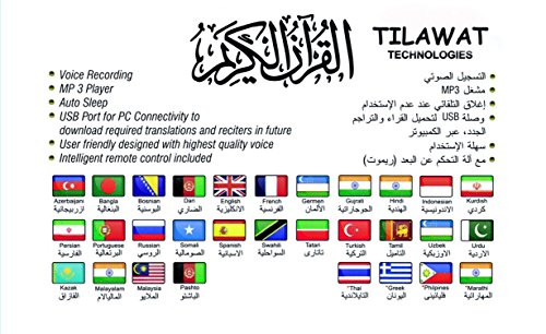 -. Binding : Electronics -. Brand : iQuran Learning -. EAN : 0784672937306 -. Feature : 35 Full Quran Recitations by Famous Imams / 30 Different Languages Translations / HD Hight Quality Superior Sound Quality / Digital Display for Easy Navigation / Remote Control Easy to Use -. Label : iQuran Learning -. Manufacturer : iQuran Learning -. MPN : SQ-168 -. PackageQuantity : 1 -. PartNumber : SQ-168 -. ProductGroup : CE -. ProductTypeName : PORTABLE_AUDIO -. Publisher : iQuran Learning -. Studio : iQuran Learning -. Title : Quran Speaker -Arabic English Mp3 Audio Digital Display 8gb Hd Quality Speaker with Remote Control -35 Recitations of Famous Imams and 30 Different Translations and Tafseer- Best Way to Listen, Learn and Understand Quran. Rechargeable Battery for Indoor & Outdoor Use -. UPC : 784672937306