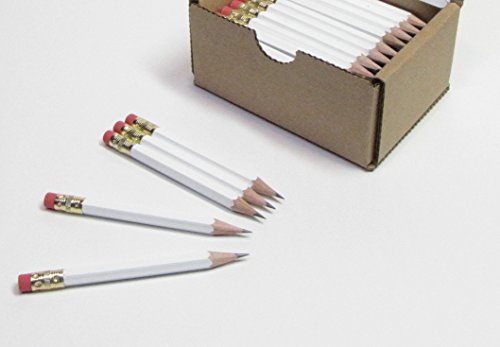 Half Pencils with Eraser - Golf, Classroom, Pew, Pocket -#2 Hexagon, Sharpened, (Box of 48). Color Choice: (White)