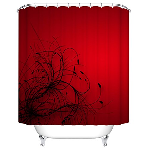 Black Red Plant Shower Curtain - Set included Hooks Rings NO Liner needed Polyester Fabric NON PEVA/Peva/Vinyl Premium Water-Repellent Mildew-Resistant and Antibacterial Design for Home Bathroom