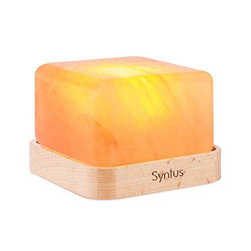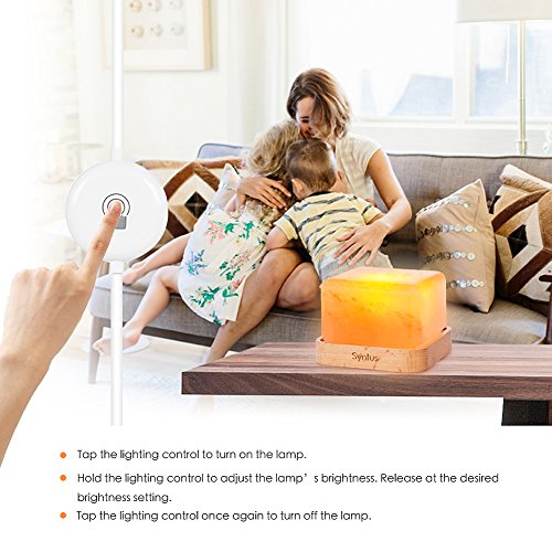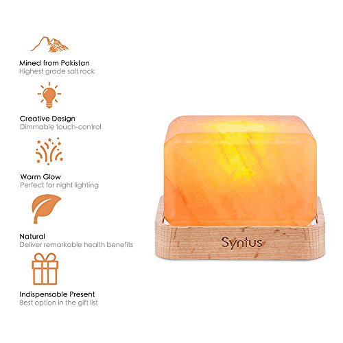 Syntus Himalayan Salt Lamp Natural Pink Crystal LED Night Light, Hand Carved Salt Rock Lamp With Wood Base, Dimmable Touch Switch & UL Listed Power Adapter