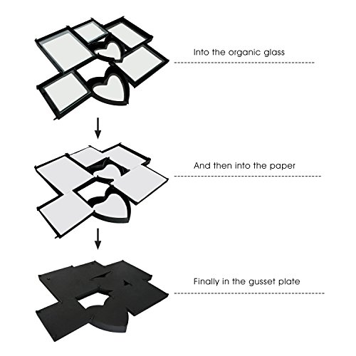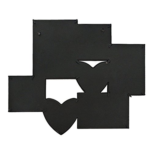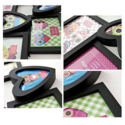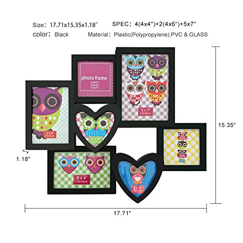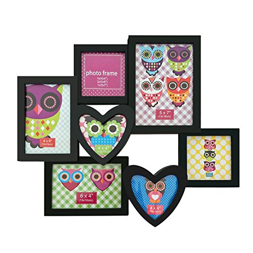Adeco 7 Openings Decroative Black Collage Picture Frame - Made to Display Two 4x4 heart shape, Two 4x6, One 5x7 Photos