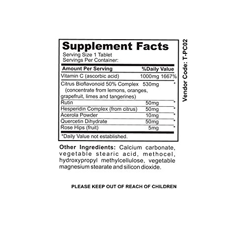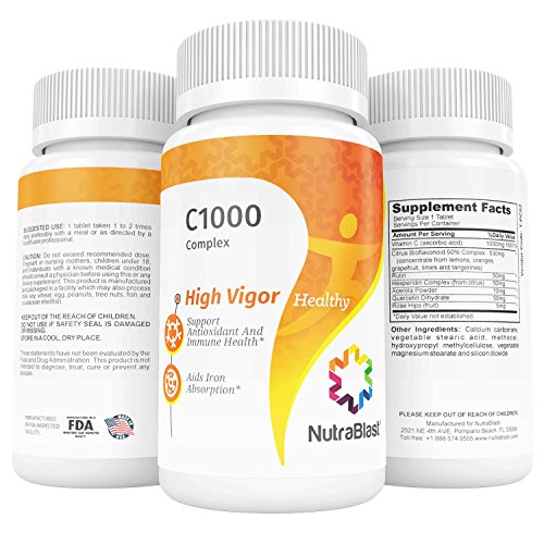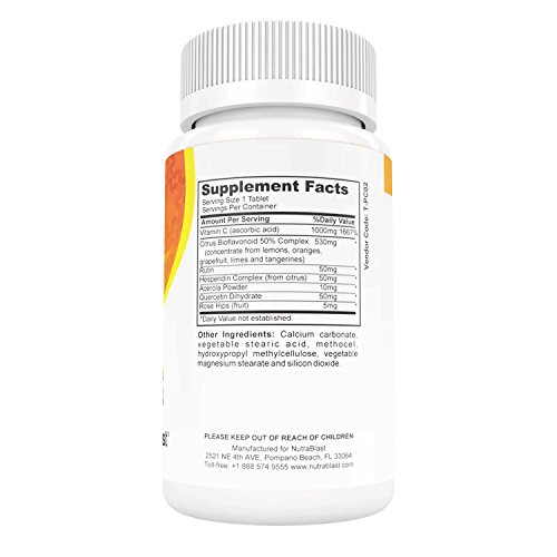 -. Title : NutraBlast Vitamin C 1000Mg with Bioflavonoids, Rutin, Acerola, Hesperidin, Quercetin, and Rose Hips - Supports Metabolism, Collagen, Body's Cells, and Joint Health - Made in USA (50 Coated Tablets)
