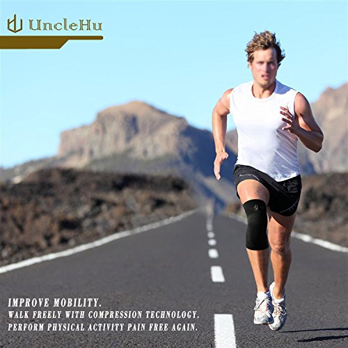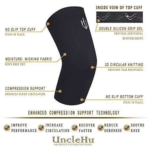 UncleHu Knee Compression Sleeve Suppport for Knee Pain- BEST Knee Brace, Braces and Supports Knee for Pain Relief, Meniscus Tear, Arthritis, Joint Pain, Injury Recovery, Running, Men & Women,1pair