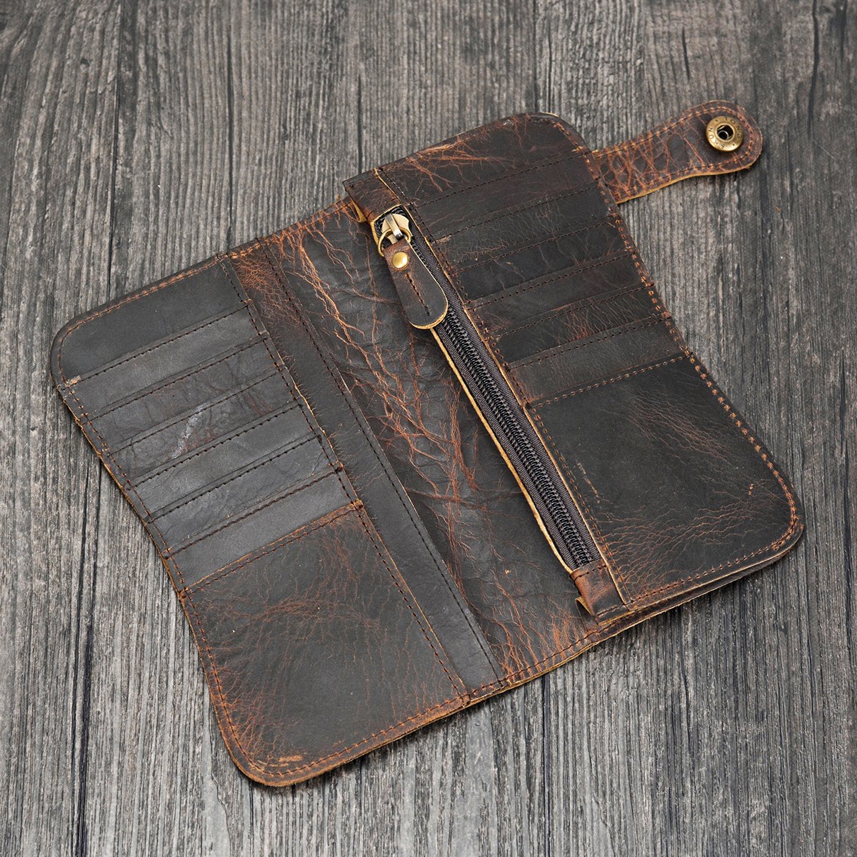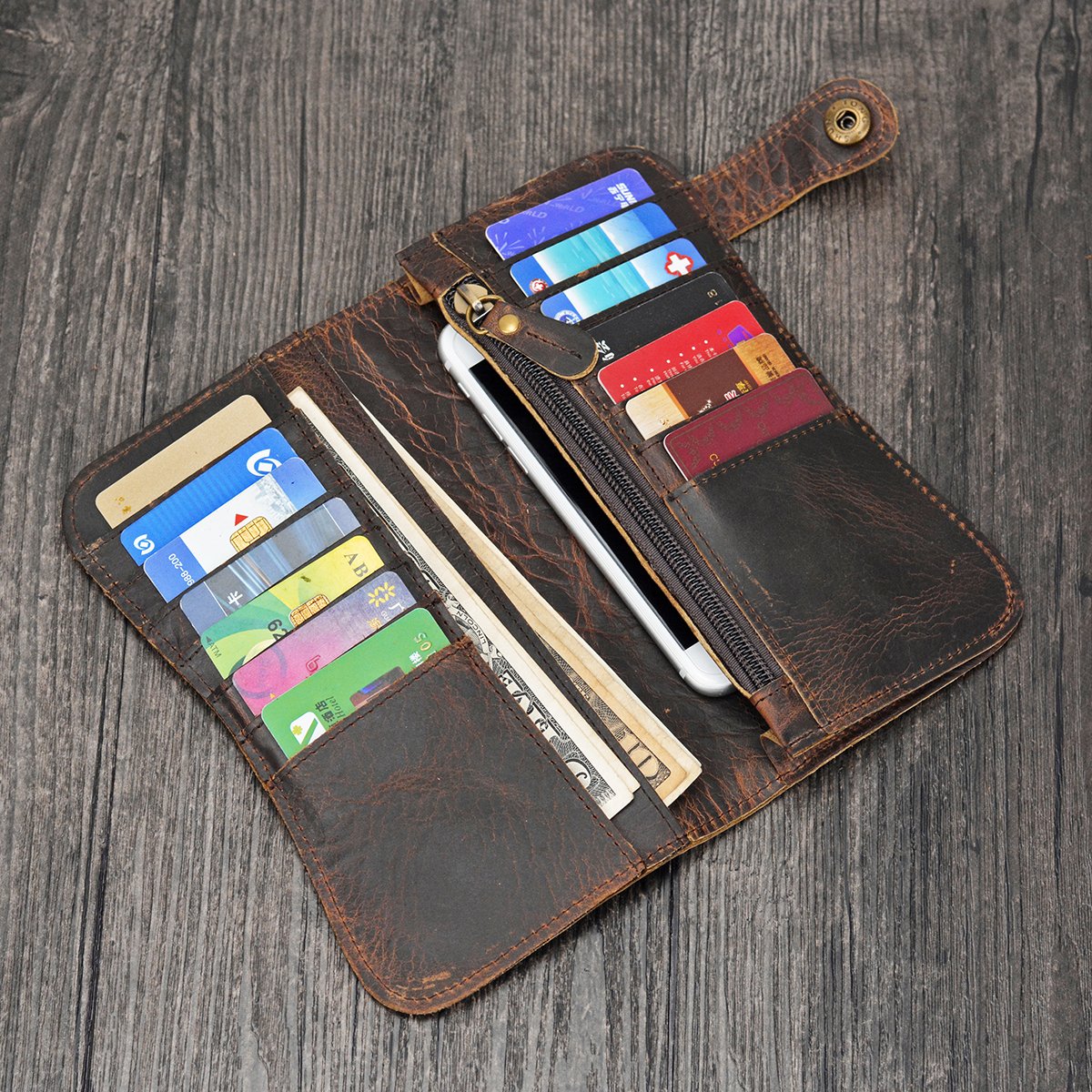 It is a round chain long wallet made with high-class genuine leather, the back is also real leather, 14 cards put in! Cash in is a wide match, cashew 50 tags can be accommodated
