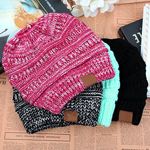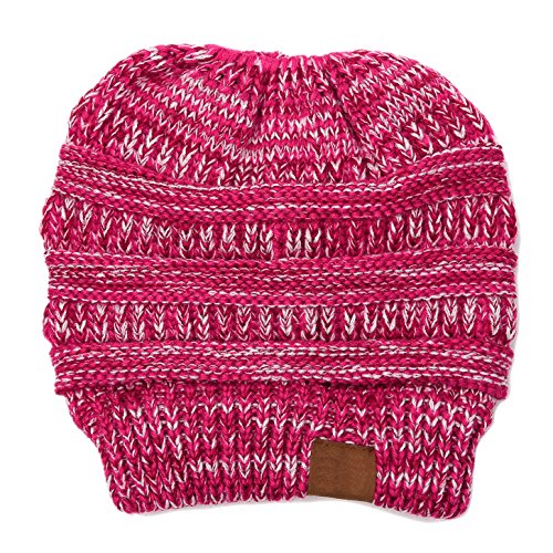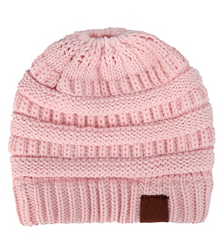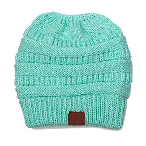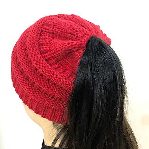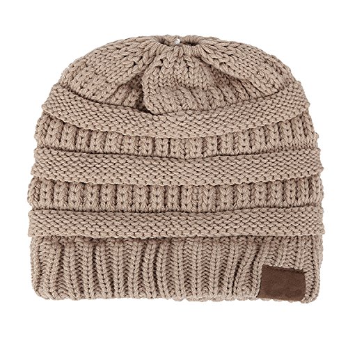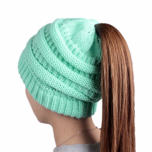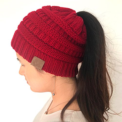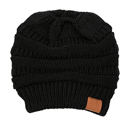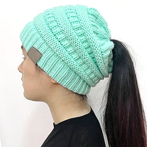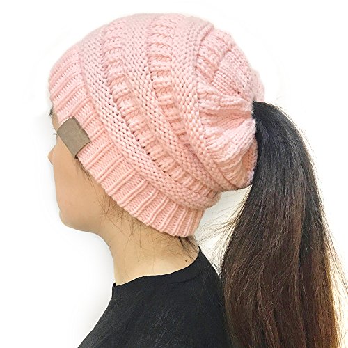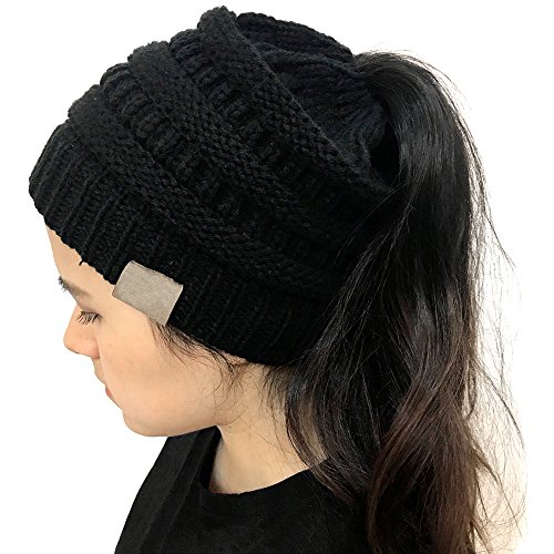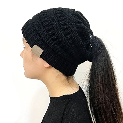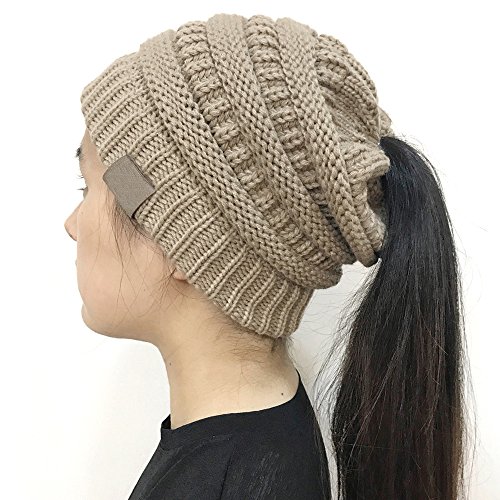 | (FADA)/Accessories/Hats/DIRECT FROM USA/FADA BeanieTail Soft Stretch Cable Knit Messy High Bun Ponytail Winter Women Beanie Hat |