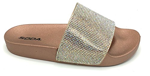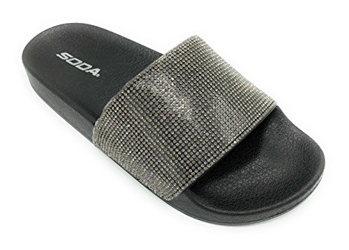 Product DescriptionSoda brand rhinestone slide sandals.0
