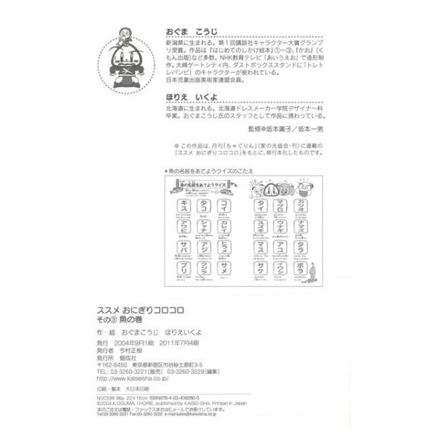 【商品基本情報】 商品名称:ススメおにぎりコロコロ その三魚の巻 著者/出版社:おぐま こうじ/おぐま こうじ 初版発行日:2004/09/01 サイズ:A5判 ページ数:94 ISBN/JAN:9784034392805/4528189557017