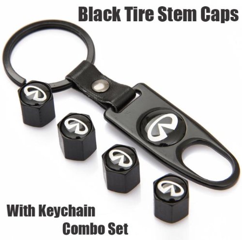 Infiniti Black Tire Stem Valve Caps and Black Keychain Combo Set