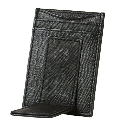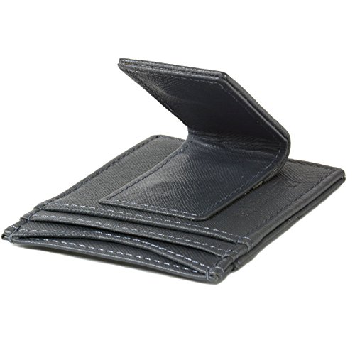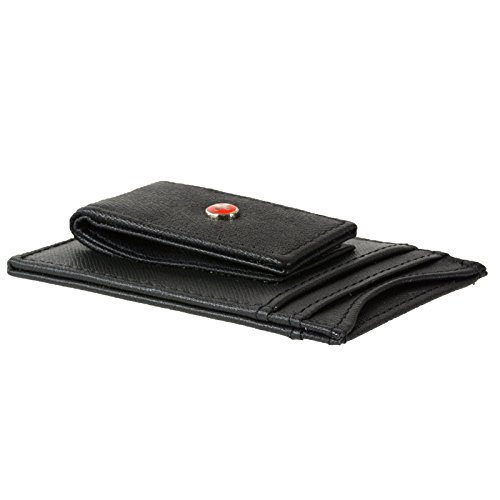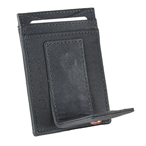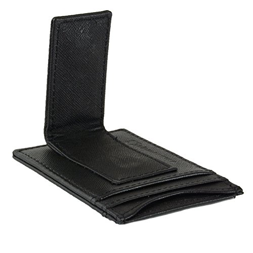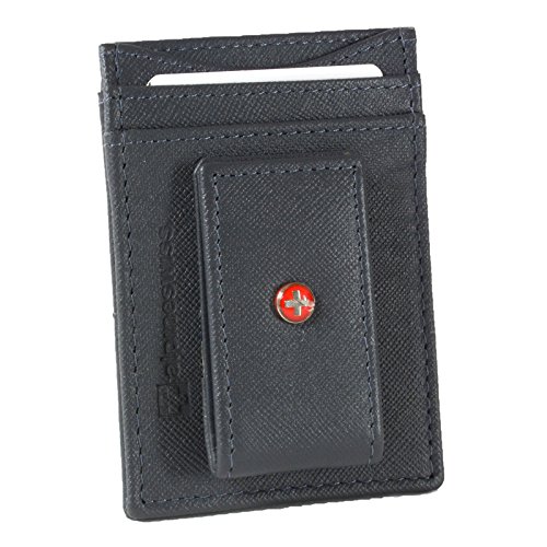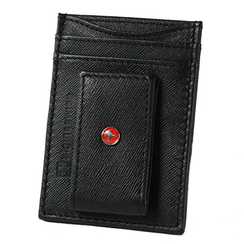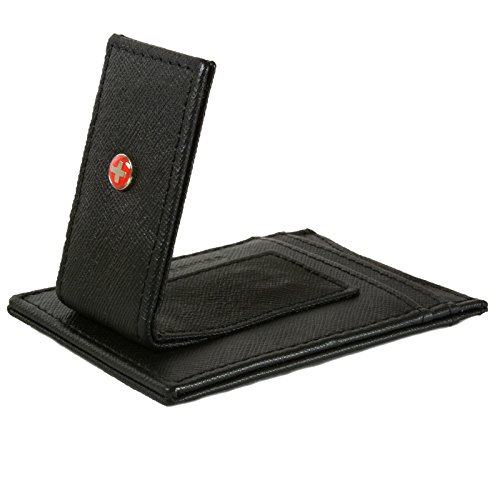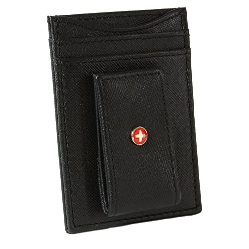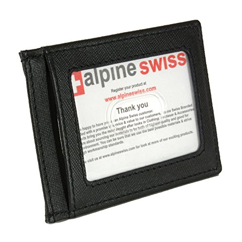 Alpine Swiss Genuine Leather Money Clip front pocket wallet with magnet clip and card ID Case, Black