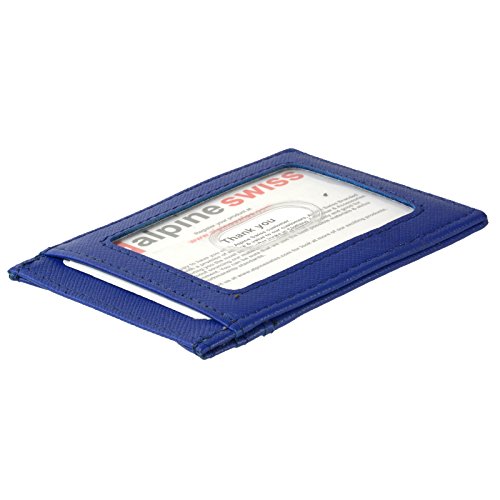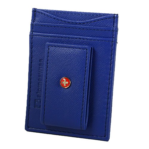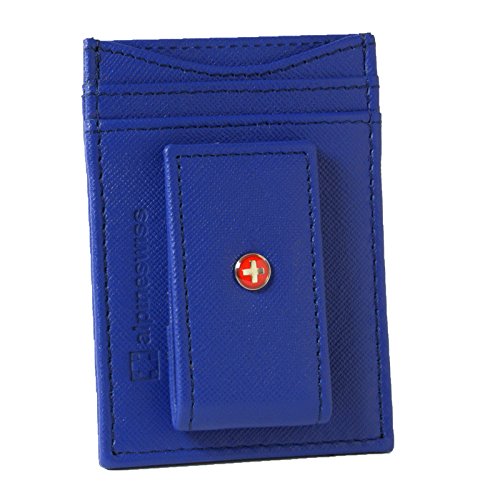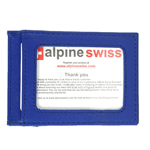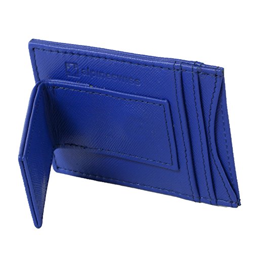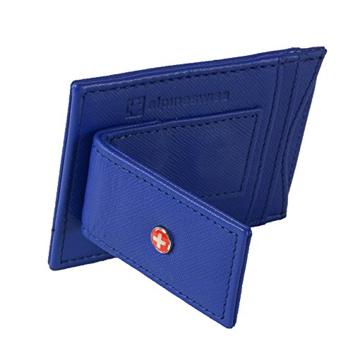Alpine Swiss Mens Wallet Leather Money Clip Thin Slim Front Pocket Wallet Crosshatch Blue