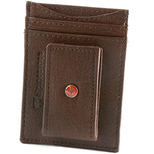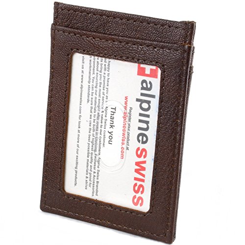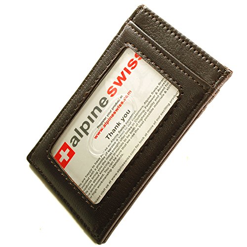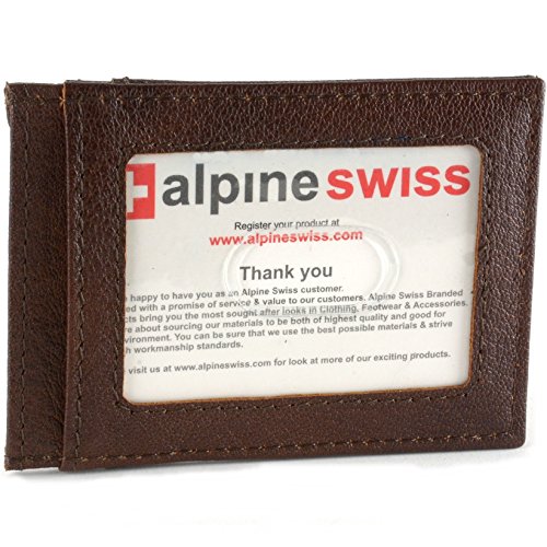 Alpine Swiss Mens Wallet Leather Money Clip Thin Slim Front Pocket Wallet DK. Brown