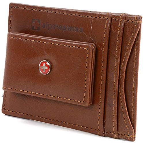 Alpine Swiss Mens Wallet Leather Money Clip Thin Slim Front Pocket Wallet Brown