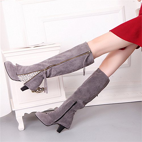 Binding : Apparel Product Description Paris Hill Women's Fashion Riding Boots Lace Decor Mid Heel Knee High Boots Paris Hill devotes to offer high quality clothing at really reasonable prices for you,confidently ensure our product's quality and your satisfaction. Super sexy and trendy women's mid chunky heel suede over the knee high boots with side zipper and lace detail decor,gorgeous and graceful,perfect for all fashion ladies/girls. Ideal for all casual occasions,shopping,party,office,school or pub,etc.Great with shorts,skirts or dress.Just let your imagination go wild! 100% Money Back ONCE you are dissatified with the items.If you like our products,please share your experience with us and other customers by leaving reviews below.Thank you! 0
