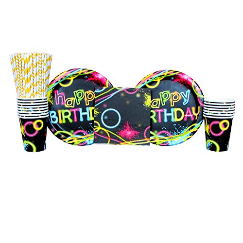 -. Title : Glow Party Supply Pack for 16 Guests: Straws, Dinner Plates, Cups, and Luncheon Napkins
