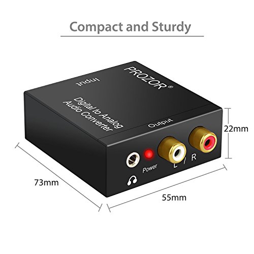 PROZOR Digital to Analog Audio Converter converts coaxial or toslink digital PCM audio signals to analog L/R RCA and 3.5mm Jack audio. Features: