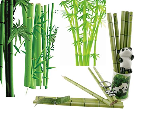 The pencil is bamboo pattern,panda's favourite food!The pen bag is very soft touch.A panda shape sharpener help you sharp pen easier and faster