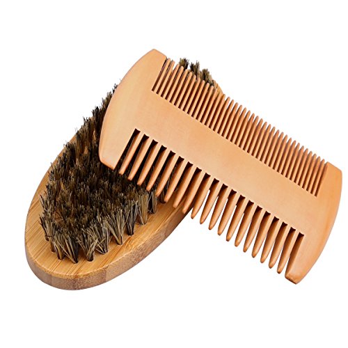 - GREAT GROOMING KIT: Natural wooden comb and 100% boar bristle beard brush set, Including a boar bristles beard brush, ,beard comb and beard bib,Cotton bag and premium gift box , Works great on any type of beard.