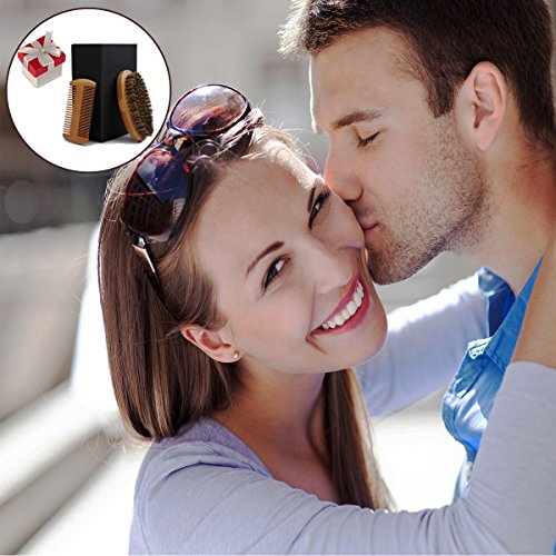 - HIGH QUALITY: Boar Bristle set evenly in the wooden block and not easy to fall off, Yet soft enough, doesn't scratch your skin. The comb is made of sandal wood and designed as thick teeth and thin teeth, Reducing static & tension, snag free.