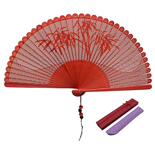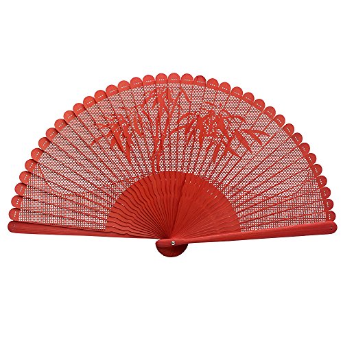 Jsswb Red Hand Made Fan on Lacquer Bamboo