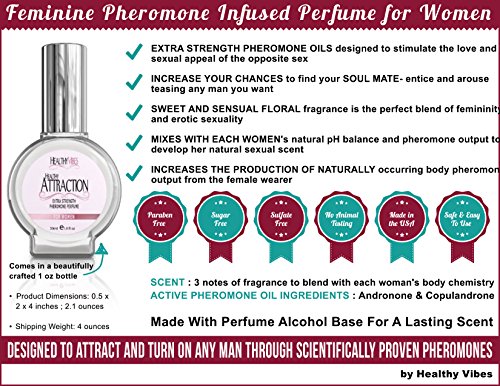 Healthy Attraction Perfume by Healthy Vibes (1 fl oz) - Pheromone Perfume with Andronone and Copulandrone Pheromones for Maximum Attraction - Citrus, Floral Fragrance - Glass Bottle, Made in the USA