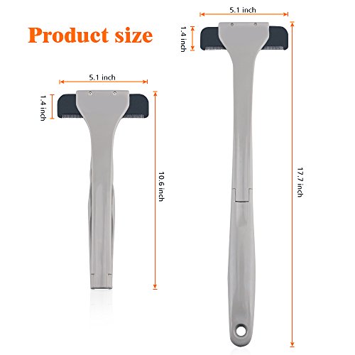 - Foldable Long Handle: The handle of the back shaver can be adjusted from 10.6"-17.7", the foldable design that lets you adjust it to shave your back, neck, shoulders and hard to reach areas,it can let you shave your body hair by yourself and it's also convenient for you to storage and travel.