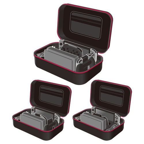 ●軽量で耐衝撃に優れたEVA素材を使用し「Switch本体」「Switchドック」「Proコントローラ」「Joy-Conグリップ」「Joy-Con充電グリップ」「ACアダプター」「HDMIケーブル」等、Switch本体と周辺機器を一括して収納出来る便利な収納ケースです。