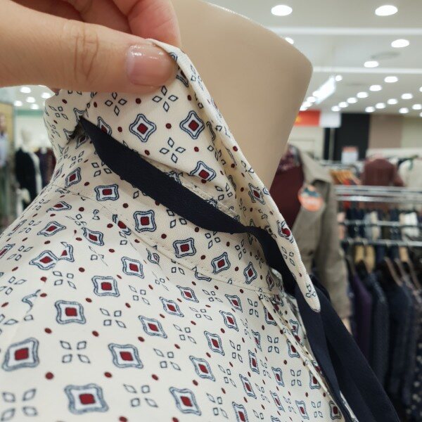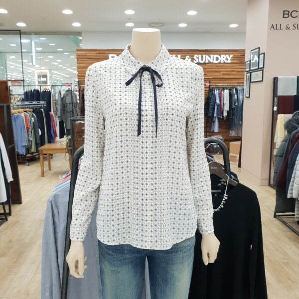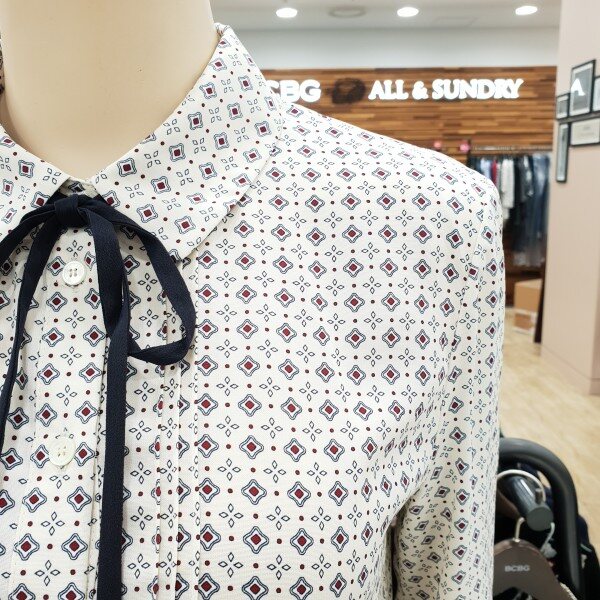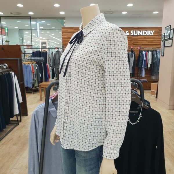에스닉한 패턴프린팅이.매력적인리본 블라우스리본은탈착이가능