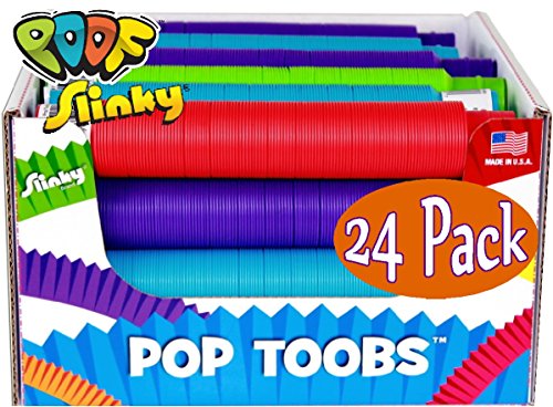-. Binding : Toy -. Brand : Slinky -. Color : Assorted -. EAN : 0701748641806 -. Feature : Colorful, bendable, snappable tubes that provide hours of fun / Come in an assorted color 24-pack and designed to stretch and make great sounds / 8-inch tube expands 4-times its original length and is connectable with other Pop Toobs / So many ways to play and fiddle with a Slinky Pop Toob / Recommended for children 3-years of age and older -. IsAdultProduct : 0 -. Label : Slinky -. Manufacturer : Slinky -. Model : 131/24 -. MPN : 3240946 -. PackageQuantity : 1 -. PartNumber : 3240946 -. ProductGroup : Toy -. ProductTypeName : TOYS_AND_GAMES -. Publisher : Slinky -. Studio : Slinky -. Title : Slinky 24-Pack Pop Toobs -. UPC : 701748641806 -. Warranty : No Warranty