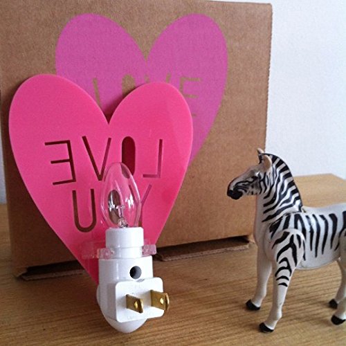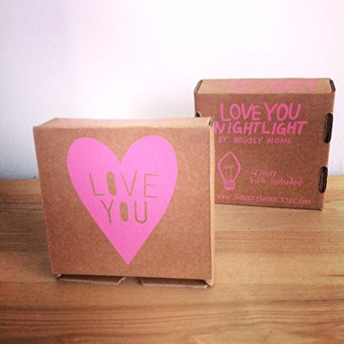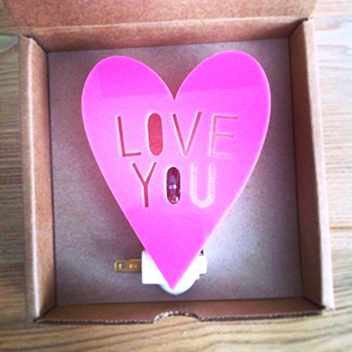 Housey Home Handmade Love You Heart Shape Plug In Wall Outlet Night Light with Switch and Screen Printed Box - Pink
