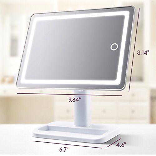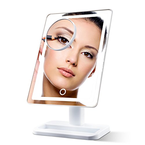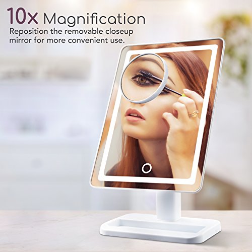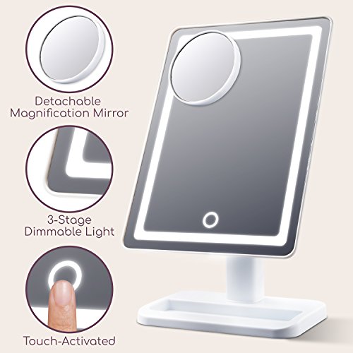 Lighted Makeup Mirror with Magnification - “LightTouch” White Touch Activated Adjustable and Dimmable 10 x 7 Inch LED Vanity Mirror with Lights and...