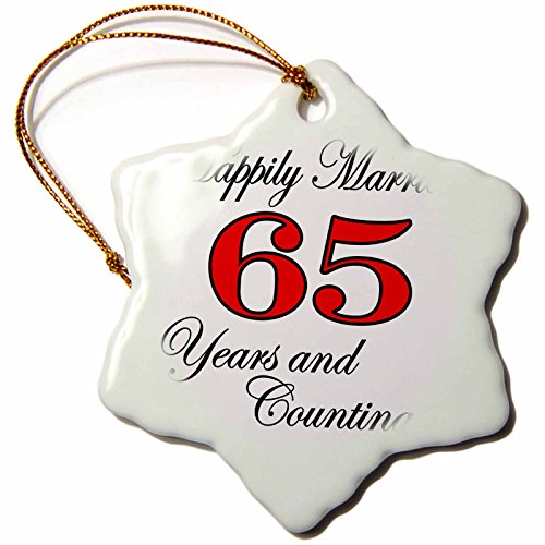 3dRose orn_193413_1 Happily Married 65 Years and Counting. Red-Snowflake Ornament, Porcelain, 3-Inch