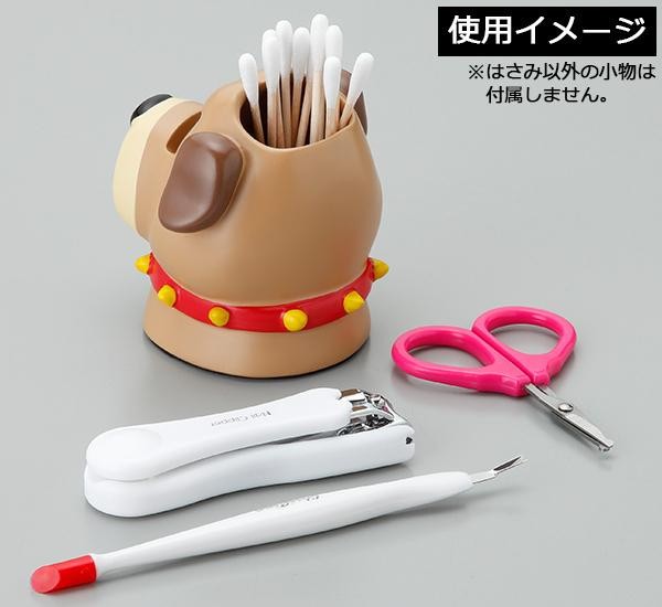 爪切りや綿棒等の身だしなみ用具を入れてお使いください。 製造国:中国 素材・材質:ポリレジン 商品サイズ:本体:W8×L8×H7.5cm 重量:約165g 仕様:はさみ:長さ約8cm、刃渡り約1.8cm 付属品:はさみ ※サプライヤー直送品 ご注文後5~6営業日後の出荷となります【商品名】セトクラフト Motif. グルーミングツールホルダー(ブルドッグ) SR-3292-160