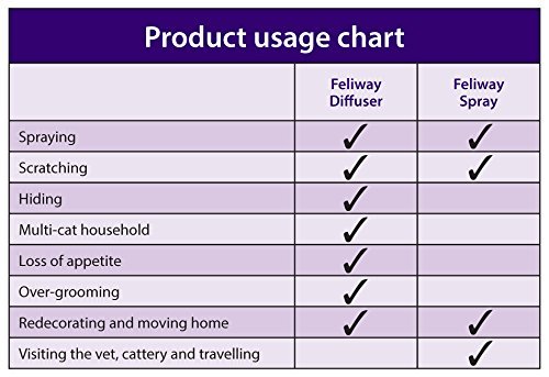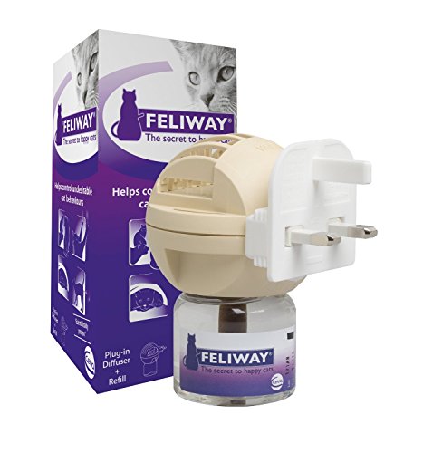 -. Binding : Misc. -. Brand : Feliway -. EAN : 3411112168750 -. Feature : Mimics the natural pheromone cats leave as a scent mark / Mains operated / lasts up to 4 weeks / Can be used to reduce stress / Can help with problem behaviour in cats -. Label : CEVA Sant -. Manufacturer : CEVA Sant -. Model : C23830J -. MPN : C23830J -. PackageQuantity : 1 -. PartNumber : C23830J -. ProductGroup : Pet Products -. ProductTypeName : PET_SUPPLIES -. Publisher : CEVA Sant -. SKU : B0031TFZRK -. Studio : CEVA Sant -. Title : Feliway Diffuser 48Ml