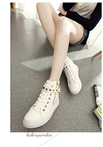 -. Title : (アリエテ) Ariete ハイカット スタッズ スニーカー レディース ゴールド ジップ スカル チャーム レザー キャンバス 切替 [ 白 ホワイト ] 21.5~24.5