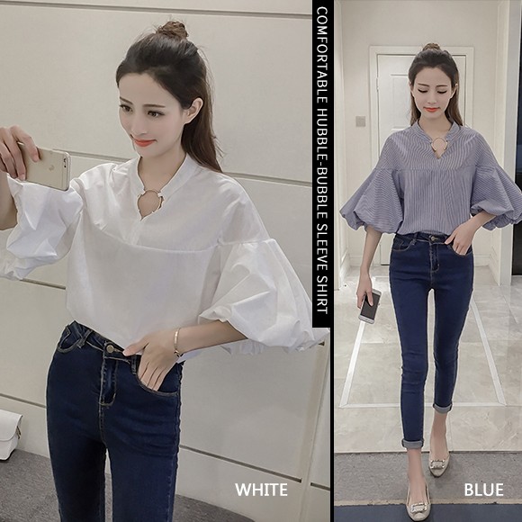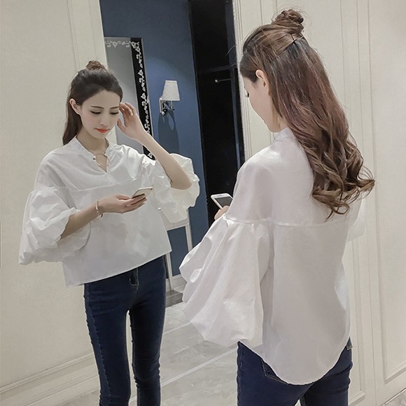 ボリュームのあるバルーンスリーブがとっても可愛い大人ブラウス♪