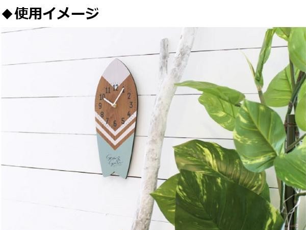 サーフィンのボードの形の掛け時計です。インテリアのアクセントにピッタリです。