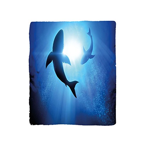 (VROSELV)/Bedding Bath/Bedding/DIRECT FROM USA/VROSELV Custom Blanket Shark Underwater World with Fish Silhouettes Circling in the Sea Surreal...