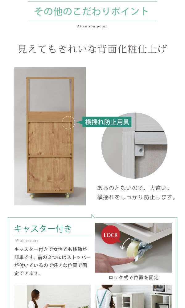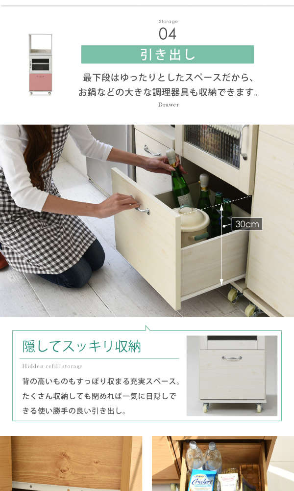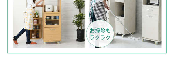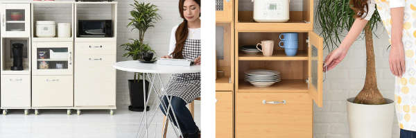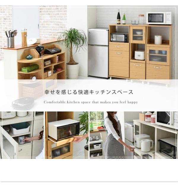 ●コンパクトながらも豊富な収納スペースで、レンジや家電も効率よくまとめられます