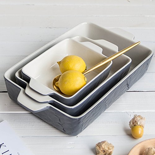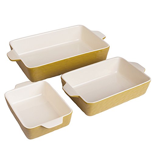 Bakeware Set, Krokori Baking Pan Ceramic Glaze Baking Dish for Cooking, Kitchen, Cake Dinner, Banquet and Daily Use - ( Random Color, 3PCS of Rectangular)