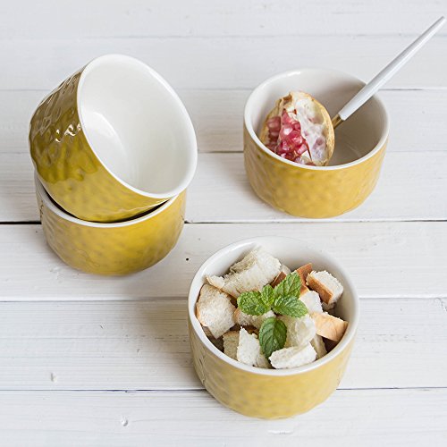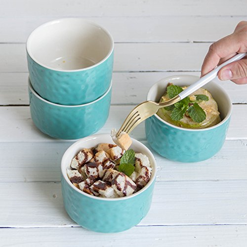 Bakeware Porcelain Ramekins Cup Set, Krokori Ceramic Glaze Pudding Cups for Cooking, Kitchen, Cake, Dinner, Banquet and Daily Use - ( Random Color, 4-Pieces of Ramekins)