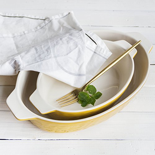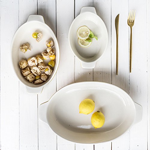 Baking Dishes, Krokori Roasting Pan Ceramic Glaze Bakeware Set for Cooking, Kitchen, Cake Dinner, Banquet and Daily Use - (Random Color, Oval of 3-Pieces)