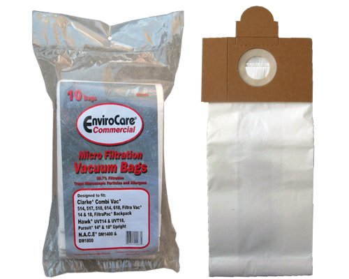 10 Clark, Alto, N.A.C.E., Hawk Allergy Commercial Upright Vacuum Cleaner Bags 50747A, Hawk Part Numbers 53430A, 5430A and 50704A-2, 50721, Fusion, FiltraVac, FiltraPac, Hawk, Pursuit, N.A.C.E, Clarke Combi Vac by EnviroCare