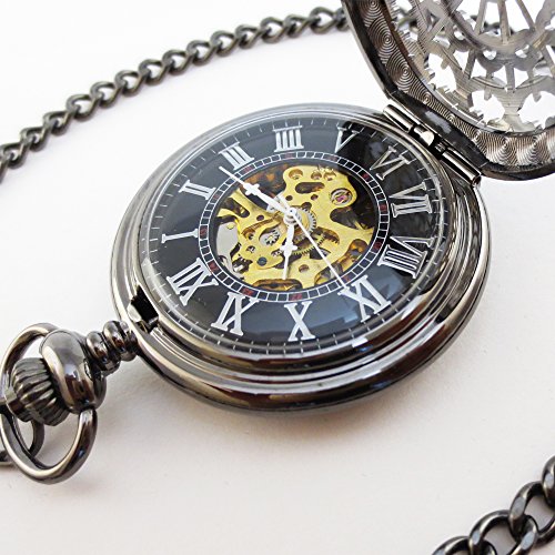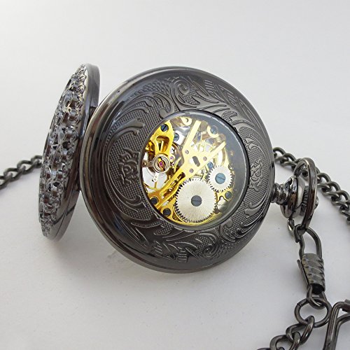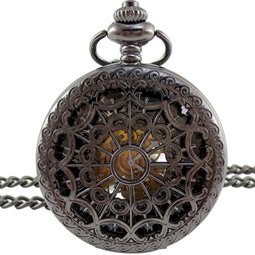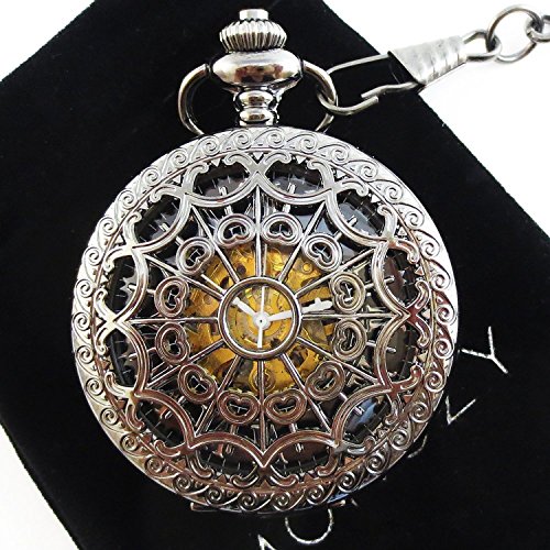 [모노G] MONOZY 앤틱 태엽 기계식 회중 시계 - 메탈 메쉬 - 【수납대 화장품 상자】 양면 스켈리턴 레트로 회중 시계