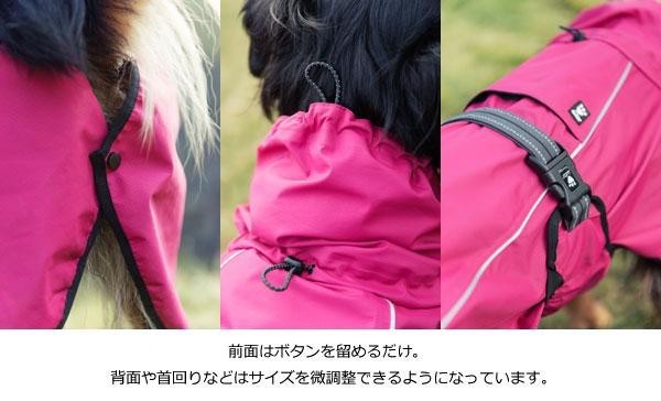 雨の日でも散歩にいきたい、そんなワンちゃんのためのレインコートです。フルッタ社が独自開発した、ハウンドテックス素材を採用。薄くて軽いながらも非常に防水効果が高く、速乾性、耐久性も優れています。 |