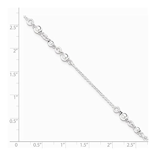 Solid 925 Sterling Silver Polished with 1in. Ext. Fancy Anklet 9" - with Secure Lobster Lock Clasp