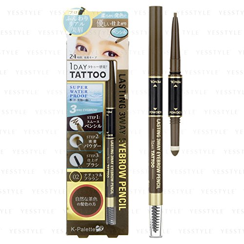 K-Palette - Lasting 3 Way Eyebrow Pencil (#02 Natural Brown)