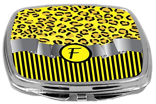 Rikki Knight Compact Mirror, Letter f Initial Yellow Leopard Print and Stripes