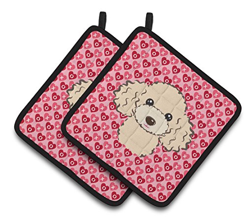 Caroline's Treasures Buff Poodle Hearts Pair of Pot Holders, 7.5HX7.5W, Multicolor