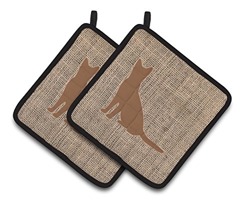 Caroline's Treasures Cat Faux Burlap & Brown Pair of Pot Holders BB1071-BL-BN-PTHD, 7.5HX7.5W, Multicolor