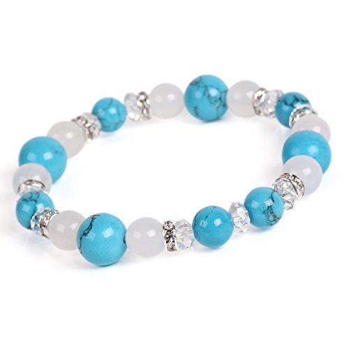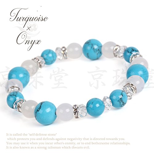 원본상품명: 【京珠堂】AAA カット水晶×濃いタ?コイズ×ホワイトオニキス 8mm パワ?スト?ン ブレスレット